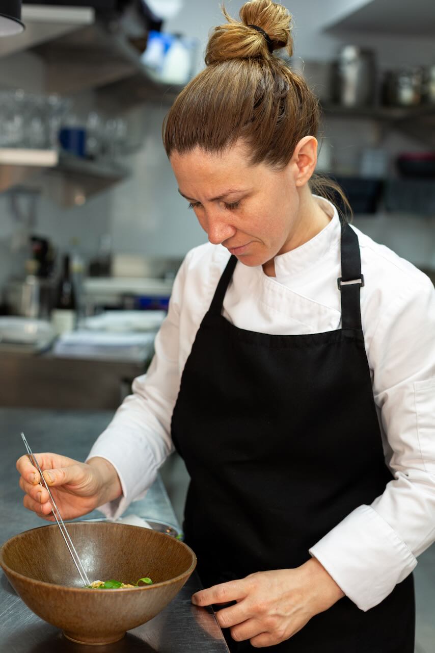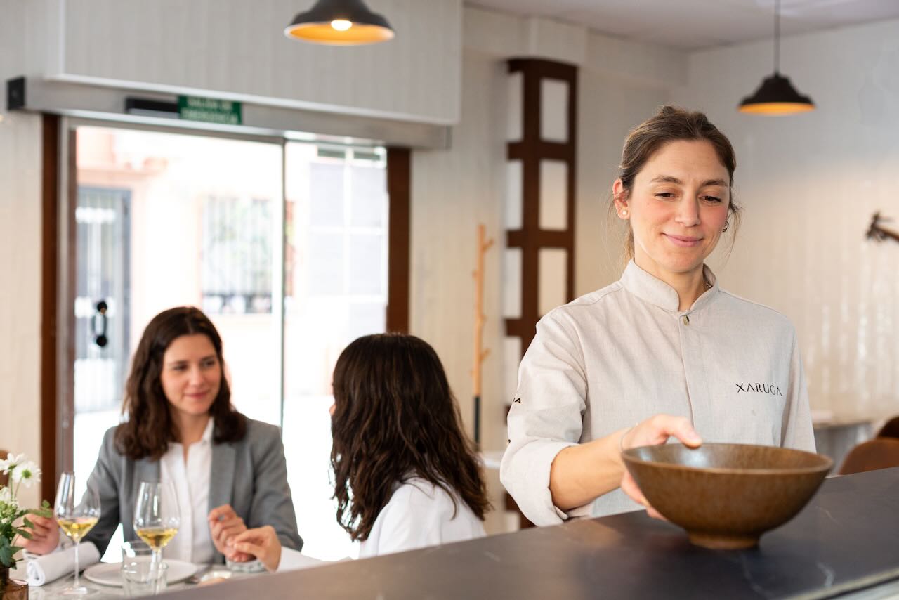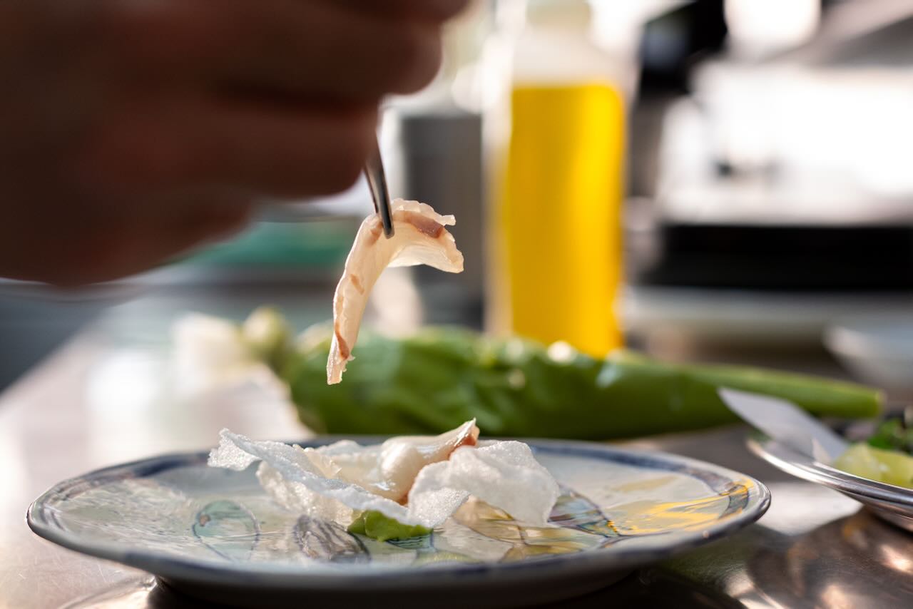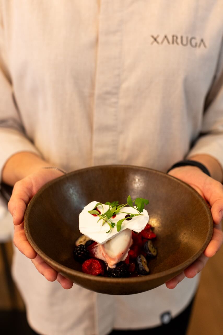 Las fotografías de Xaruga buscan reflejar la esencia de este restaurante del Cabanyal, un lugar donde cada detalle cuenta y cada rincón tiene su propia historia. Desde el instante en que entras, la cocina abierta te da la bienvenida y te hace partícipe de todo lo que sucede en el corazón del restaurante: el cuidado en la elección de los ingredientes, la atención a cada plato, y la pasión con la que se trabaja cada receta.